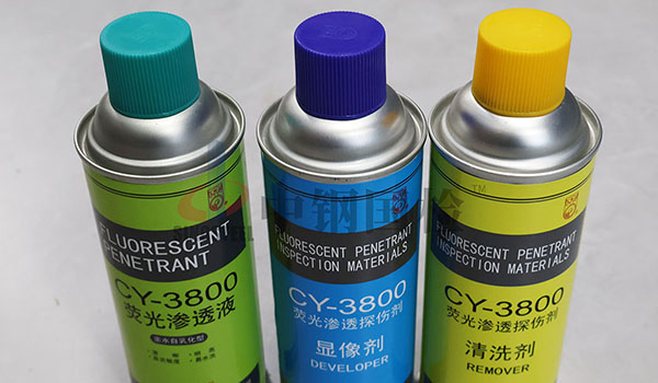 工件表面被施涂含有熒光染料或著色染料的滲透液后,在毛細作用下經一定的時間的滲透,滲透液可以滲進表面開口缺陷中。隨后去除工件表面多余的滲透液,干燥后再在工件表面施涂吸附介質——顯象劑。顯象劑在毛細作用下將吸附缺陷中的滲透液,使滲透液回滲到顯象劑中,在一定的光源下(黑光或白光),缺陷處非滲透液痕跡被顯示出來(黃綠色熒光或鮮艷紅色),從而探測出缺陷的形貌和分布狀態。