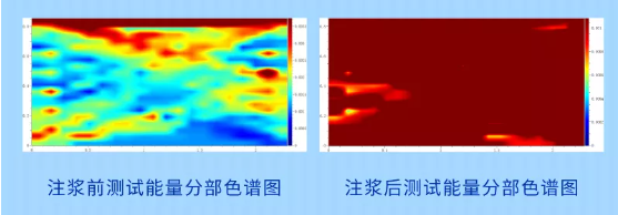 測試過程中,經過逐點掃描被檢測區域,彈性波在缺陷界面產生散射和衰減,可根據波幅變化的程度判斷缺陷的性質和范圍;彈性波中各頻率成份在缺陷界面衰減程度不同,接收信號的頻率明顯降低,可根據接收信號主頻或頻率譜的變化分析判別缺陷情況。