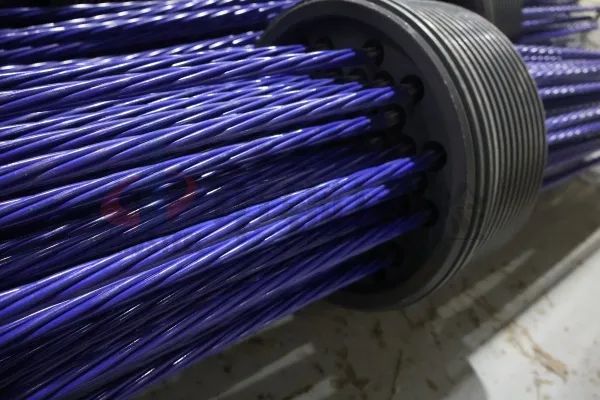 環氧涂層鋼絞線由多根高強度鋼絲絞合而成,表面涂覆有環氧樹脂。環氧樹脂是一種高分子化合物,具有良好的粘附性、耐化學腐蝕性和電絕緣性。通過環氧涂層,可以有效防止鋼絞線受到腐蝕,延長其使用壽命。