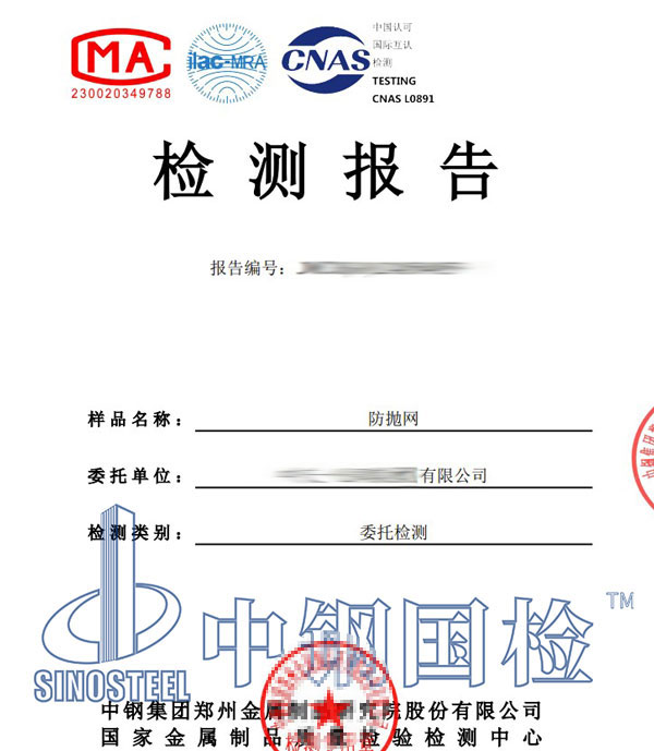 以上就是中鋼國檢根據(jù)客戶委托的樣品檢測項(xiàng)目結(jié)果,出具的防拋網(wǎng)第三方檢測報(bào)告,報(bào)告加蓋了相關(guān)資質(zhì)印章,具備法律效力,在中鋼國檢官網(wǎng)和國家質(zhì)量監(jiān)督局均線上可查,全國認(rèn)可,用途廣泛。