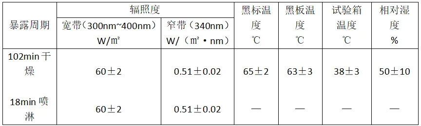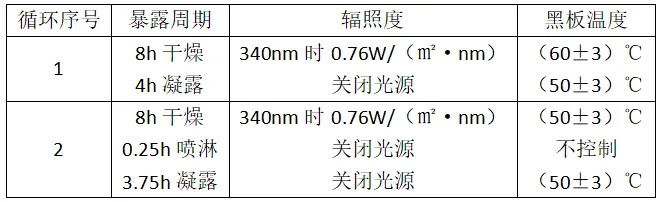 2、暴露條件:使用UVA-340燈人工氣候加速老化輻照條件如下: