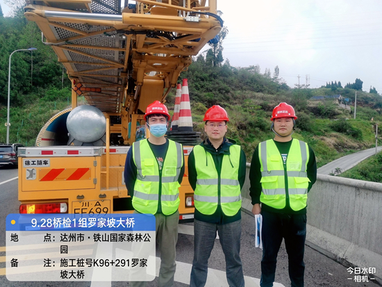 2022年7月四川片區利用子公司吉林正達甲級資質中標四川省營山至達州高速公路交工驗收檢測,此次中標是中心歷史首個高速公路交竣工業務,也是王禾佳個人第一個獨立負責的項目組。下圖中為營達高速羅家坡大橋準備乘坐橋檢車下橋檢查時留念。