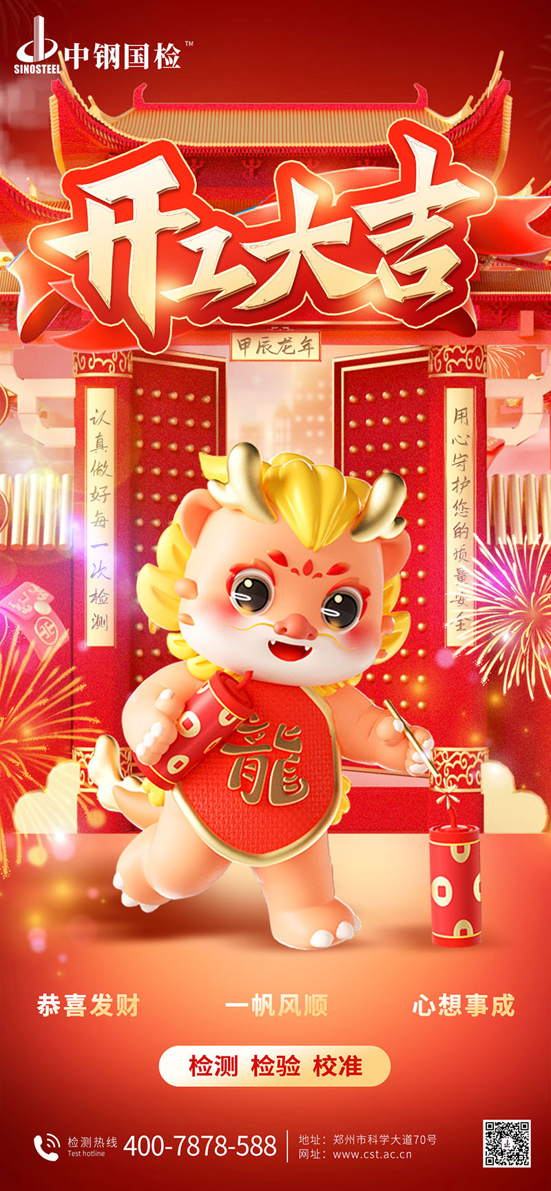 在節后正式開工之際,中鋼國檢祝大家萬事開門紅,開局皆興旺,愿大家龍年大吉,工作順利,好運連連,財源廣進,闔家安康!