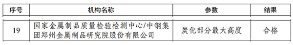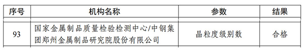 作為國家級檢測中心,中鋼國檢(國家金屬制品質(zhì)量檢驗檢測中心/中鋼集團(tuán)鄭州金屬制品研究院股份有限公司)共參加3項能力驗證項目,結(jié)果全部為合格。