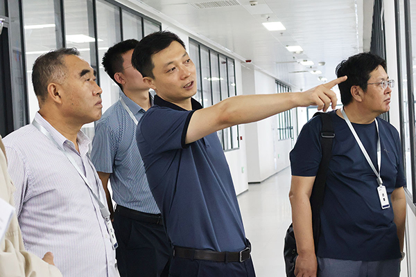 在相關人員陪同下,吳紹平一行參觀了中鋼國檢試驗室,過程中結合項目實際,圍繞質量檢測雙方進行了技術交流,并由相關人員詳細講解了中鋼國檢在智能化檢測系統、自動化檢測設備及體系管理等方面的發展情況。