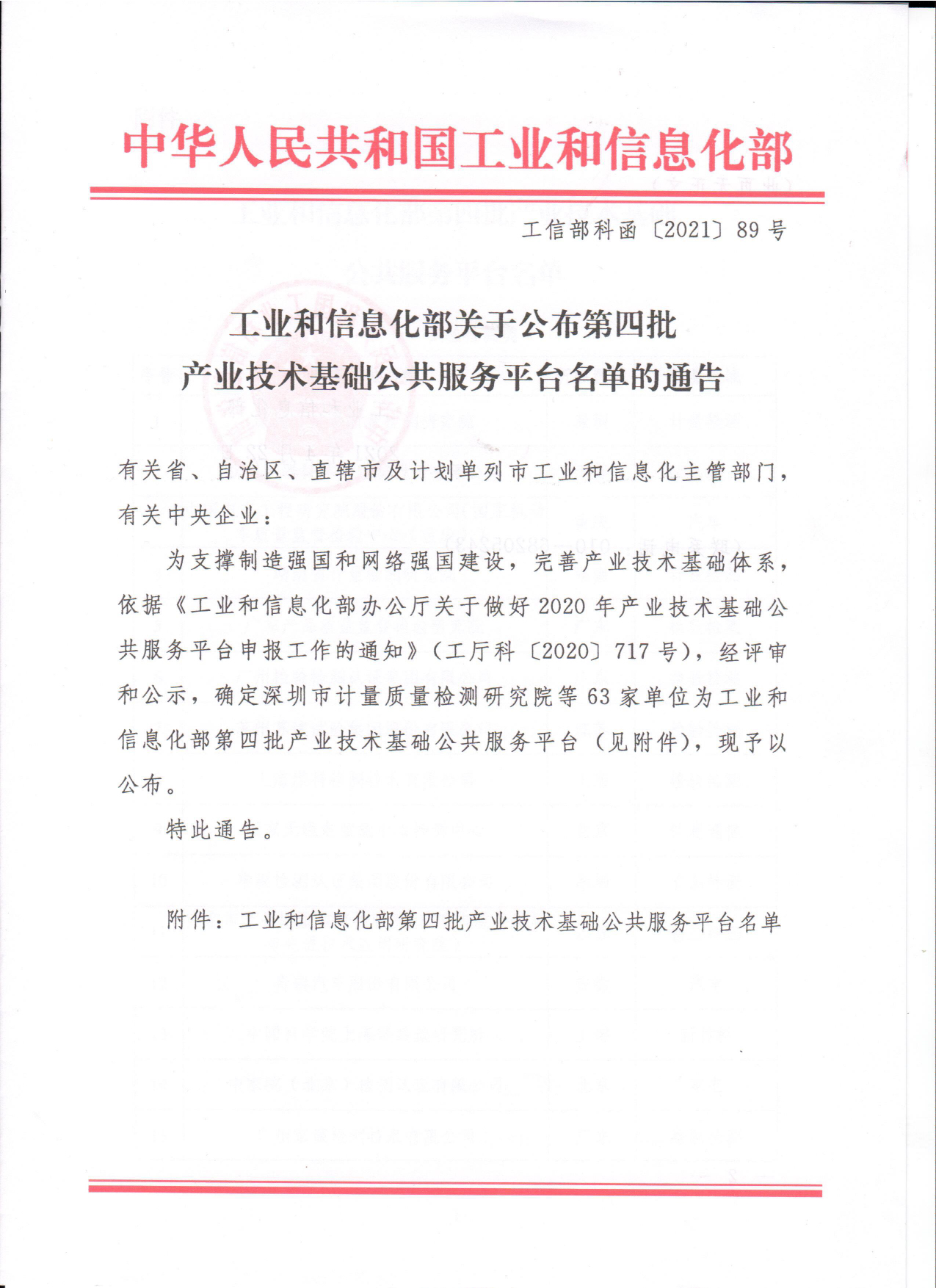 工業和信息化部關于公布第四批產業技術基礎公共服務平臺名單的通告