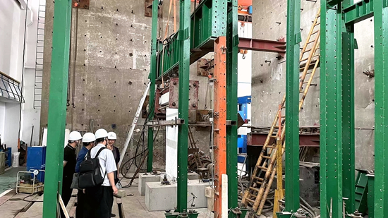隨后,土木工程學院魯亮教授帶領(lǐng)參觀了振動臺實驗室,該實驗室能開展建筑模擬抗震、阻尼器(墻)、支座等試驗。