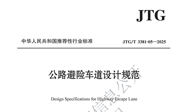 交通運輸部2025年第40號公告發布《公路避險車道設計規范》(JTG/T3381—05—2025),作為公路工程推薦性行業標準,自2025年10月1日起施行。