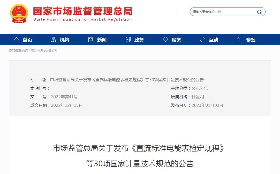 市場監管總局關于發布《直流標準電能表檢定規程》等30項國家計量技術規范的公告
