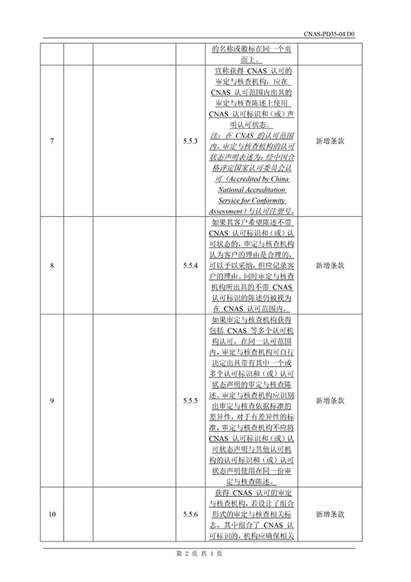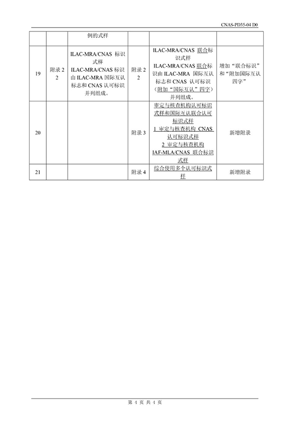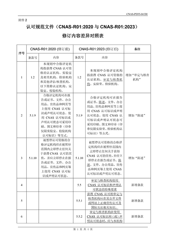 相較于CNAS-R01:2020,CNAS-R01:2023《認可標識使用和認可狀態聲明規則》內容變動如下:
