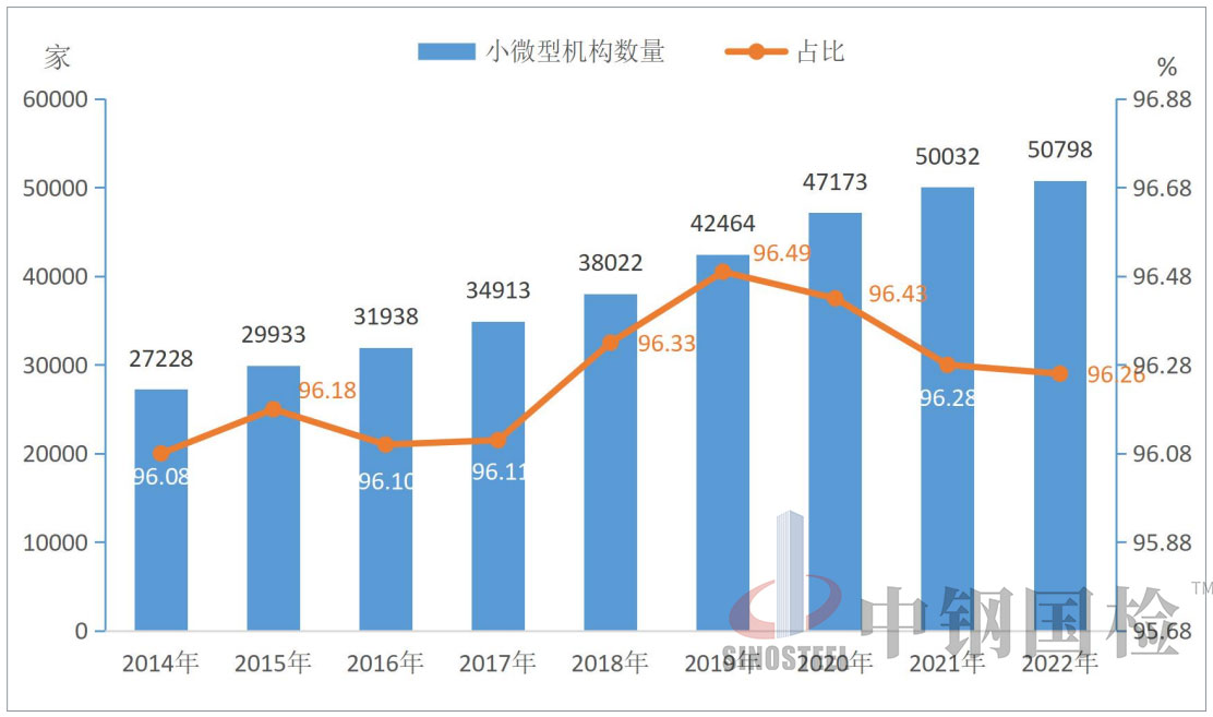 圖 1-5 2014-2022 年小微型檢驗檢測機構數量及占比情況