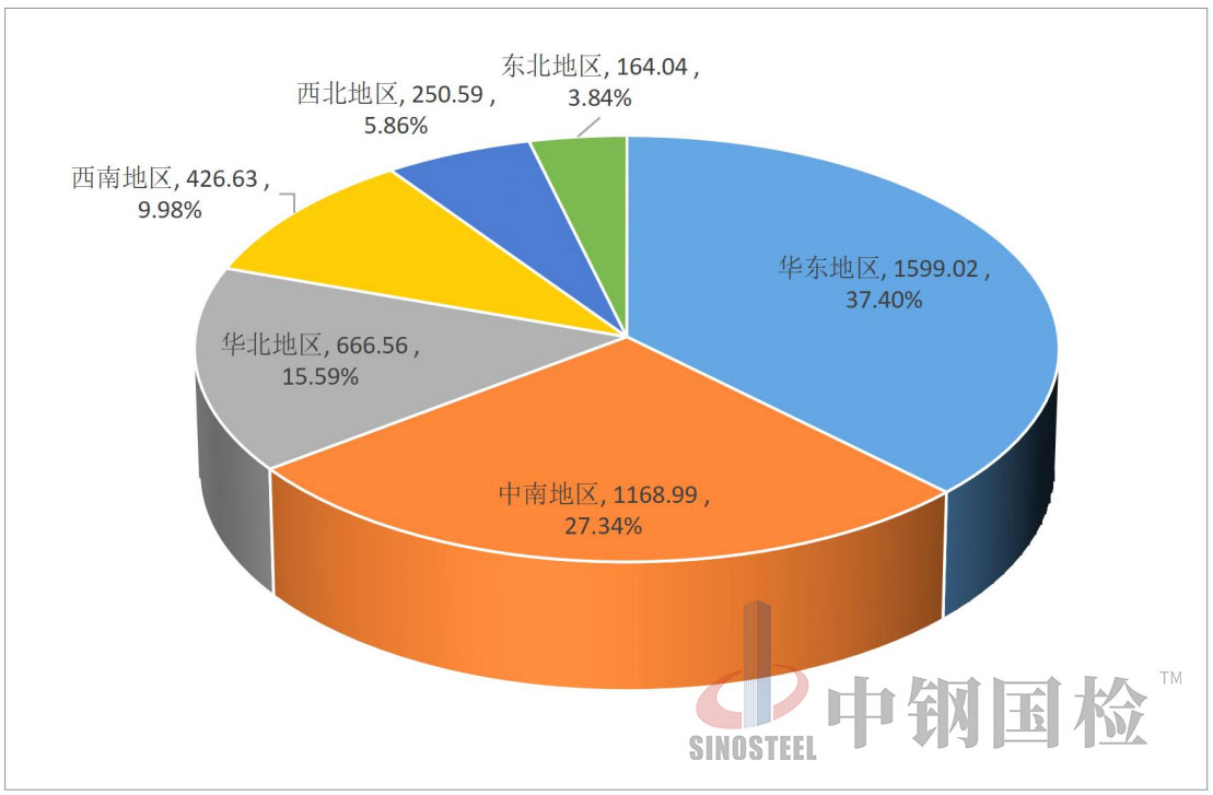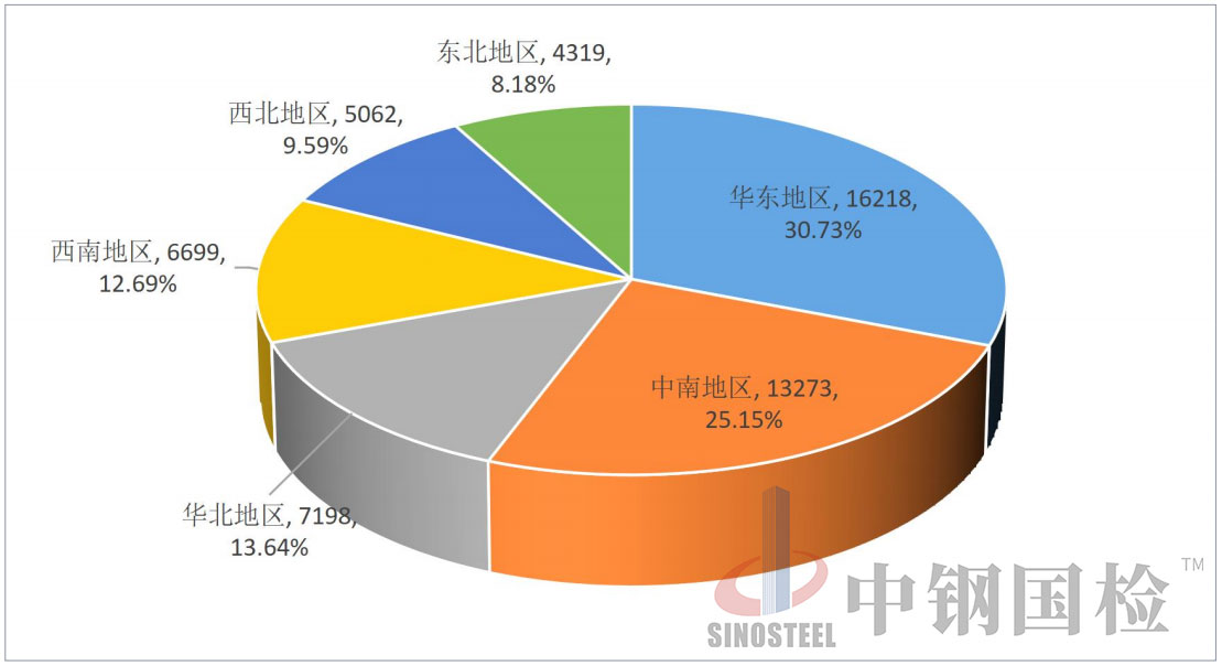 從實現營業收入的區域比重來看,2022 年各區域營業收入的比重分別為華東地區 37.4%,中南地區 27.34%,華北地區 15.59%,西南地區 9.98%,西北地區5.86%,東北地區 3.84%。其中:華東、中南、華北三大區域收入所占市場份額超過了八成,具體為 80.33%,比重同比下降 0.03 個百分點。