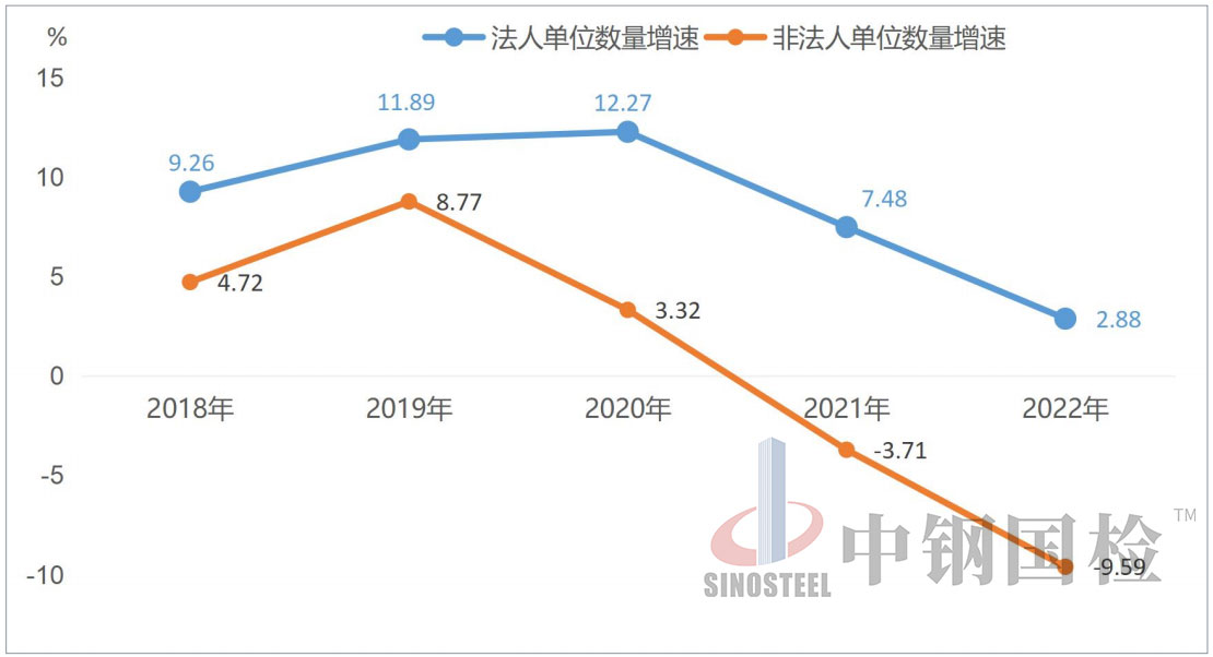 圖 1-3 2018-2022 年全國法人機構和非法人機構數量增速情況