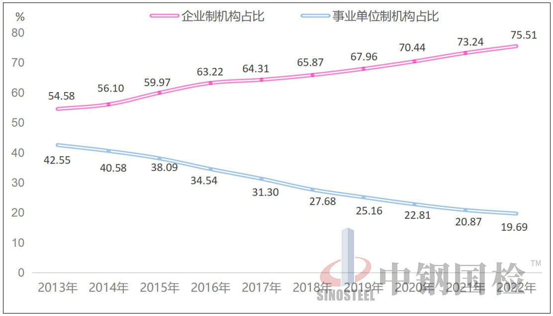 圖 1-1 2013-2022 年企業制機構和事業單位制機構占比情況