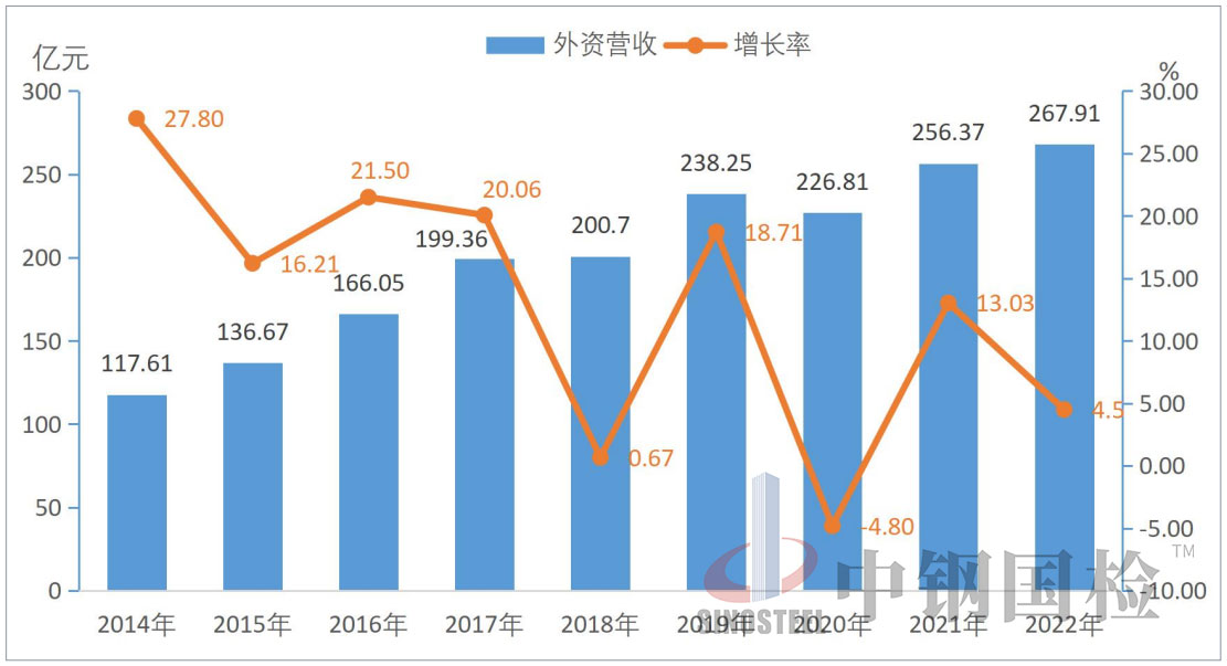 圖 1-4 2014-2022 年外資檢驗檢測機構營收增速情況