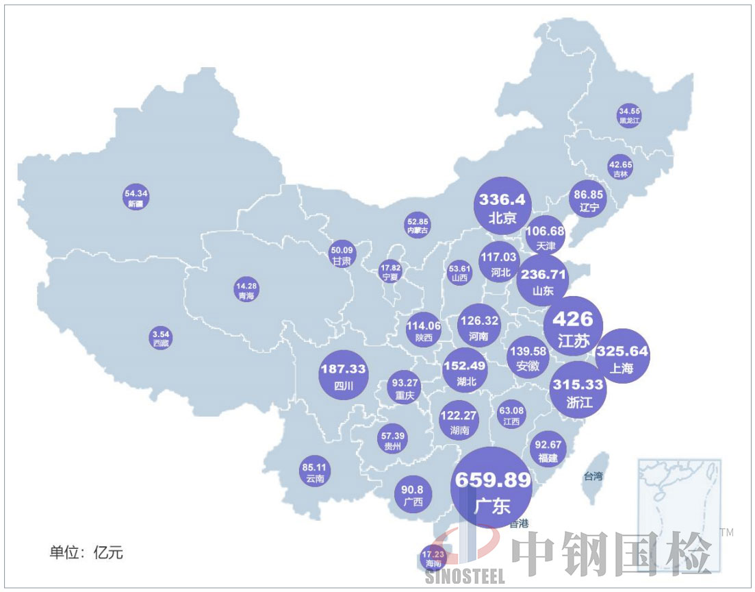 2022 年營業收入總額居前 10 位的省市依次是廣東省(659.89 億元)、江蘇省(426 億元)、北京市(336.4 億元)、上海市(325.64 億元)、浙江省(315.33億元)、山東省(236.71 億元)、四川省(187.33 億元)、湖北省(152.49 億元)、安徽省(139.58 億元)、河南省(126.32 億元)。以上 10 省市營業收入總額占全國營業收入比重是 67.96%。