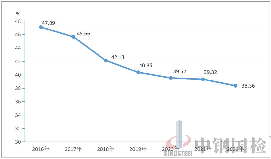 圖 1-6 2016-2022 年檢驗檢測傳統領域占行業總收入比重情況